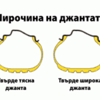 На графиката се виждат последствията от използване на неправилен размер джанта. И в двата случая гумата се деформира по начин, различен от този, който е предвидил производителят.