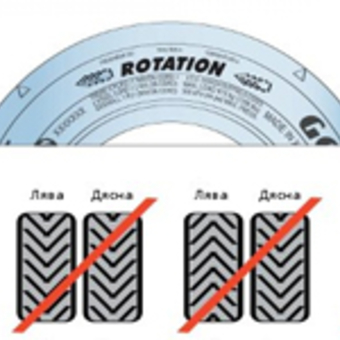 Гумите с посока на въртене трябва да се монтират така, че посоката на въртене (“Rotation”), показана със стрелки върху страницата на гумата, да съвпада с посоката на движение на автомобила (напред).