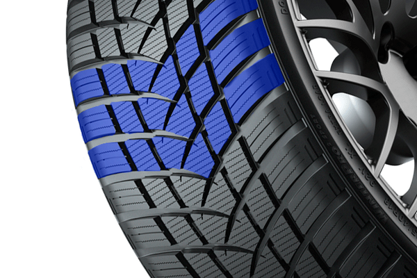 Големи, широки блокове отвън рамо увеличаване на контактната площ, осигуряване по-голям отпечатък за максимален контрол и прецизно управление при завой сухи пътища