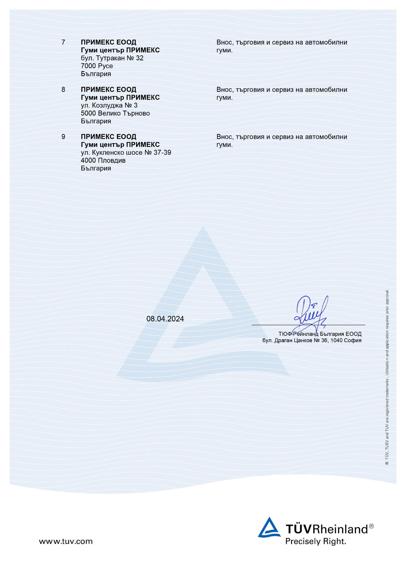 Компанията Примекс е създадена през 1997 год. в гр. Шумен с основен предмет на дейност внос и търговия с автомобилни гуми. Днес Примекс е лидер на българския пазар в областта на вноса и дистрибуцията на всякакъв вид гуми за леки и товарни автомобили, автобуси, селскостопанска, строителна, индустриална и специализирана техника. Компанията се радва на доверието и лоялността на своите клиенти, както и на голямо международно признание от страна на своите партньори - световноизвестни производители като Goodyear, Michelin, Pirelli, Hankook, Matador, Petlas и др.